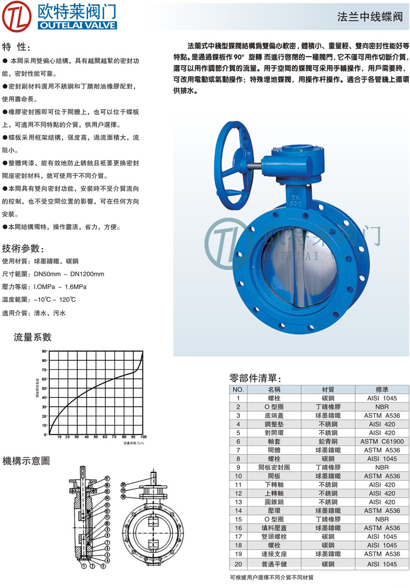 法蘭中線蝶閥
